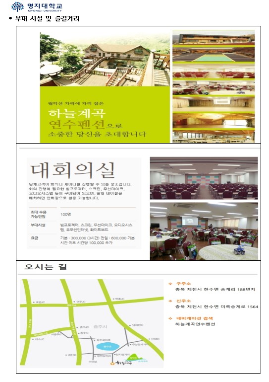 - 장소 : 충북 제천시 하늘계곡연수팬션